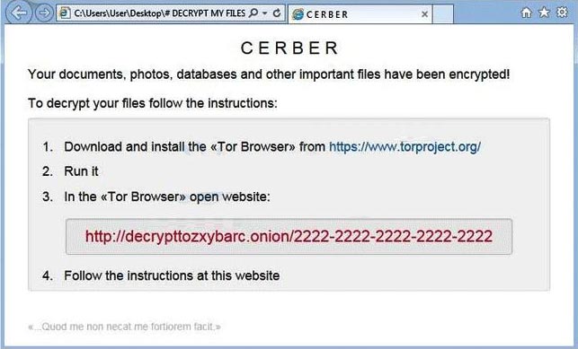 Infatti Cerber richiede il pagamento dei riscatti in bitcoin e crea un wallet specifico per ricevere il pagamento del riscatto da parte di ogni singola vittima e che al momento il pagamento è quantificato in un bitcoin, che vale circa 590 dollari, e che dopo aver pagato, la vittima ottiene la chiave per decriptare i file.