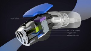 Questa è una tecnologia sviluppata da uno scienziato coreano che ci permette di respirare liberamente sotto acqua per un lungo tempo. Usando un piccolo ma potente micro compressore comprime ossigeno e immagazzina l'ossigeno estratto in un serbatoio di stoccaggio. Il micro compressore opera attraverso un micro batteria. La micro batteria è una tecnologia di prossima generazione con una dimensione 30 volte più piccola di batteria convenzionale che può ricaricarsi in modo rapido, circa 1.000 volte più veloce!