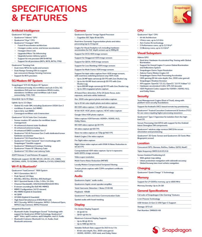 Le caratteristiche tecniche di Snapdragon 8 Gen 3