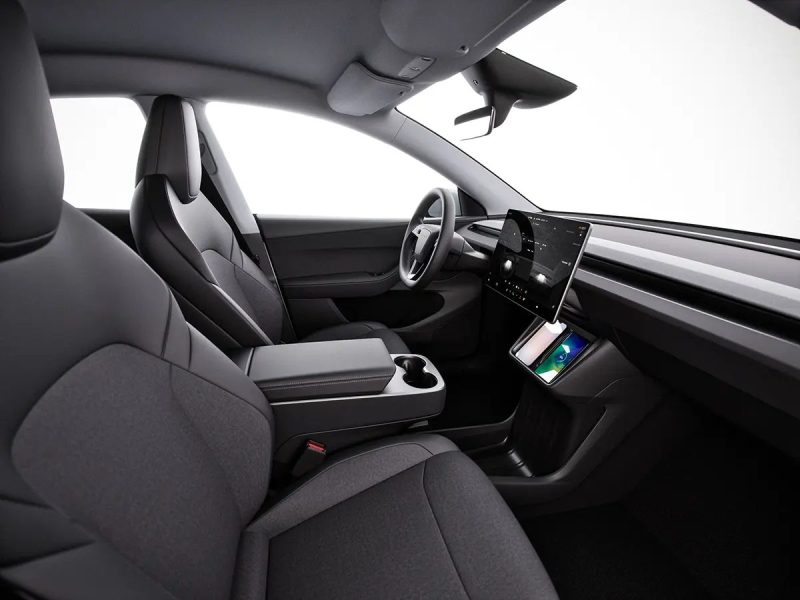 - Sedili: Realizzati in un misto di pelle sintetica e tessuto, con design dual tone sulla Model Y. I sedili anteriori sono meno avvolgenti, perdono la ventilazione, ma mantengono il riscaldamento (presente anche sul volante)