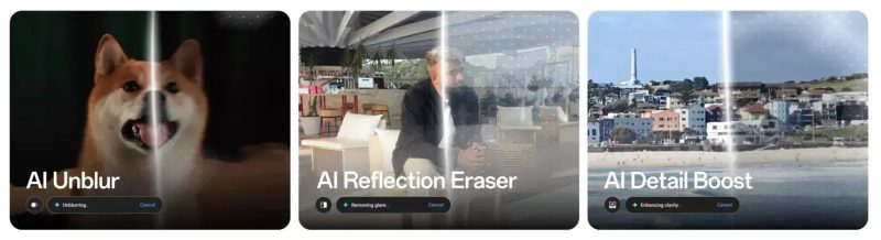 - AI Detail Boost, per migliorare la nitidezza e le immagini a bassa risoluzione o ritagliate. Questa funzione è stata integrata nell’album fotografico e può identificare automaticamente le immagini “pixelate”, offrendo miglioramenti in pochi istanti
