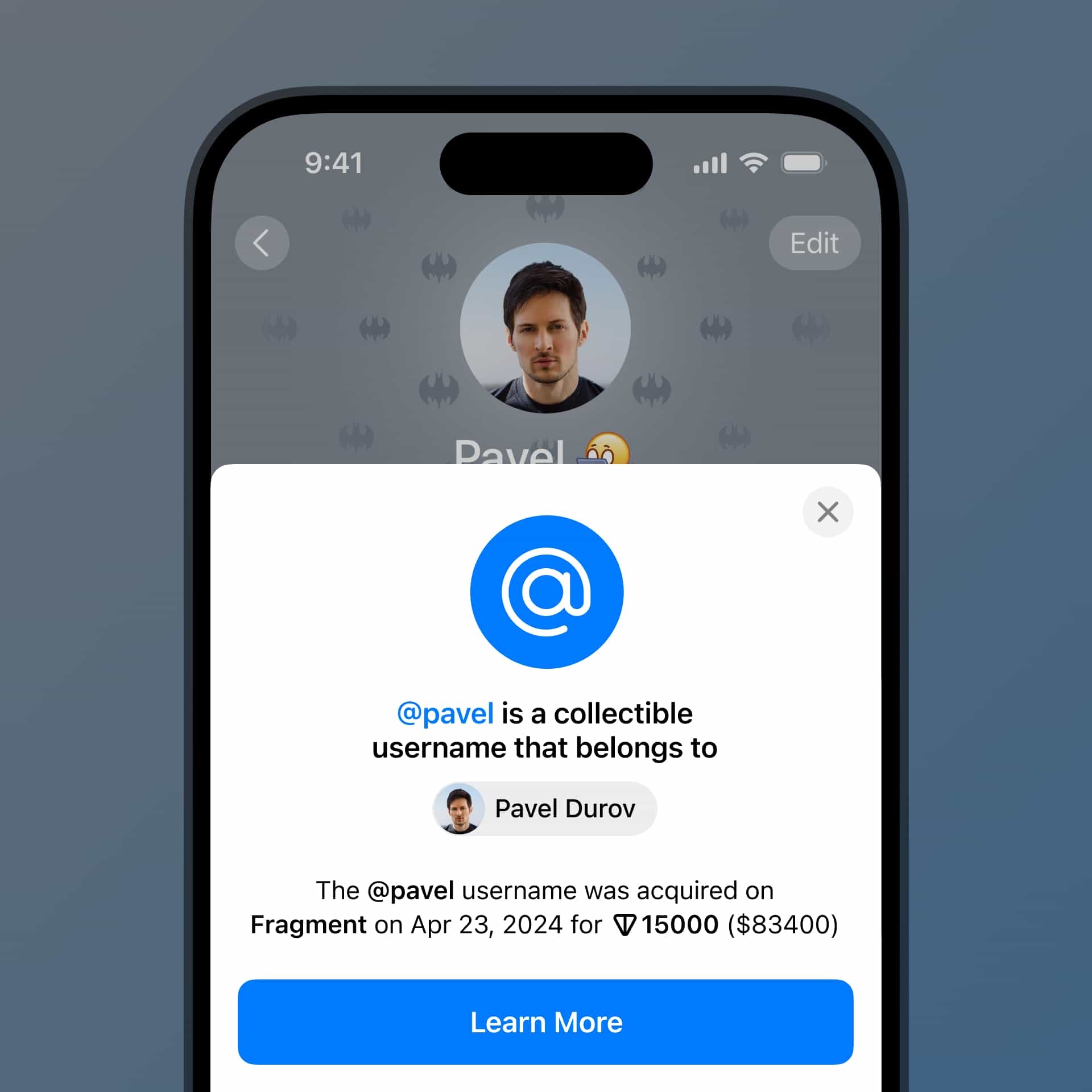 Da tempo su Telegram sono disponibili gli username collezionabili, dei veri e propri NFT acquistabili e ri-vendibili dagli utenti (tramite la piattaforma Fragment) che possono essere collegati dagli utenti ai loro account o ai loro canali.