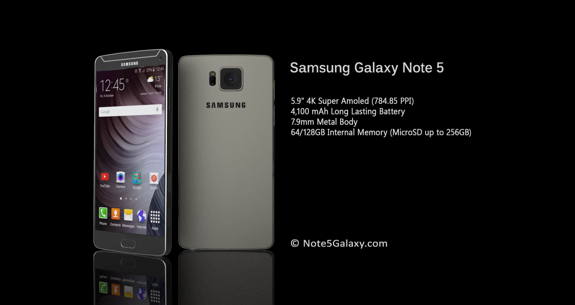 Secondi quando riportato il Samsung Galaxy Note 5 dovrebbe uscire nel prossimo mese di settembre, dovrebbe essere in metallo e in vetro ricalcando le linee del Note 4 ma con il design del Galaxy S6. Lo schermo sarà protetto da uno strato di Gorilla Glass 4, con un moderno sensore di impronte digitali. Il nuovo design però dovrebbe aumentare il peso di circa il 10/15%.