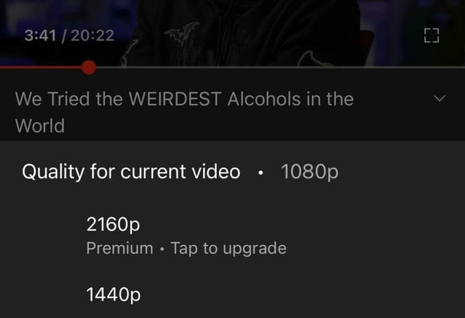 Al momento solo pochi utenti si sono imbattuti in questa modifica ma, se il test si trasformerà in realtà per tutti, i non abbonati a Premium avranno facoltà di visualizzare i video su YouTube solo fino alla risoluzione 1080p.