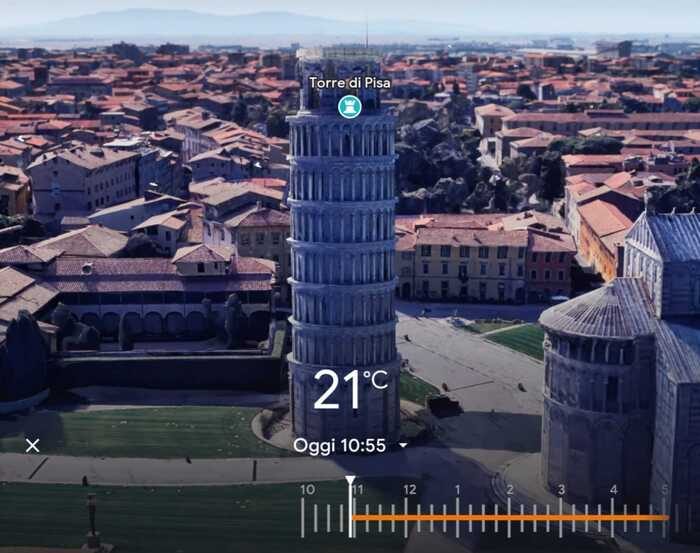 Per accedere al servizio è sufficiente cercare una città o un'area supportata in Google Maps (ad esempio la Torre di Pisa) e cliccare sull'icona 'Immersive View': in un istante sarai pronto per sorvolare virtualmente edifici e zone.