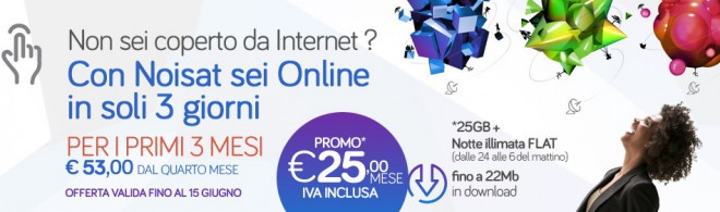 NoiSat Tooway in promozione: internet satellitare a 22Mbps da 25€/mese