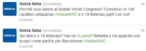 Vi basterà scrivere il motivo del perchè Nokia dovrebbe scegliere voi come inviati speciali, direttamente nella pagina dedicata all’iniziativa su Facebook o tramite Twitter utilizzando l’hashtag #NokiaMWC.