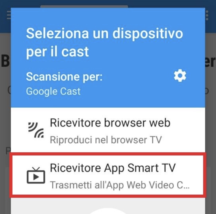 - inviare il link dallo smartphone all'app Web Video Caster sulla Smart TV