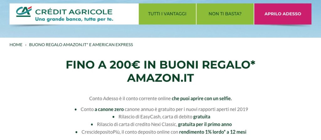 LINK PER ATTIVARE L'OFFERTA: ottieni 200€ in Buoni Amazon con Crèdit Agricole