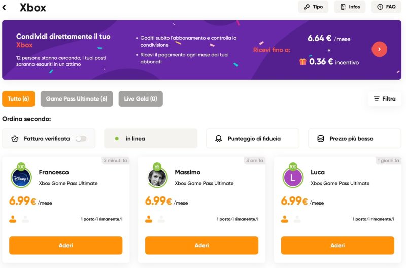 In questo caso potrai acquistare un abbonamento condiviso a Xbox Game Pass.