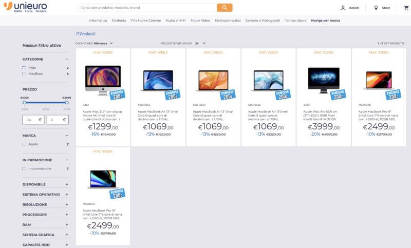 Offerte Unieuro “Mac Week” fino al 24 settembre: tasso zero e rimborsi sul vecchio PC. Ecco le migliori offerte della “Mac Week” Unieuro