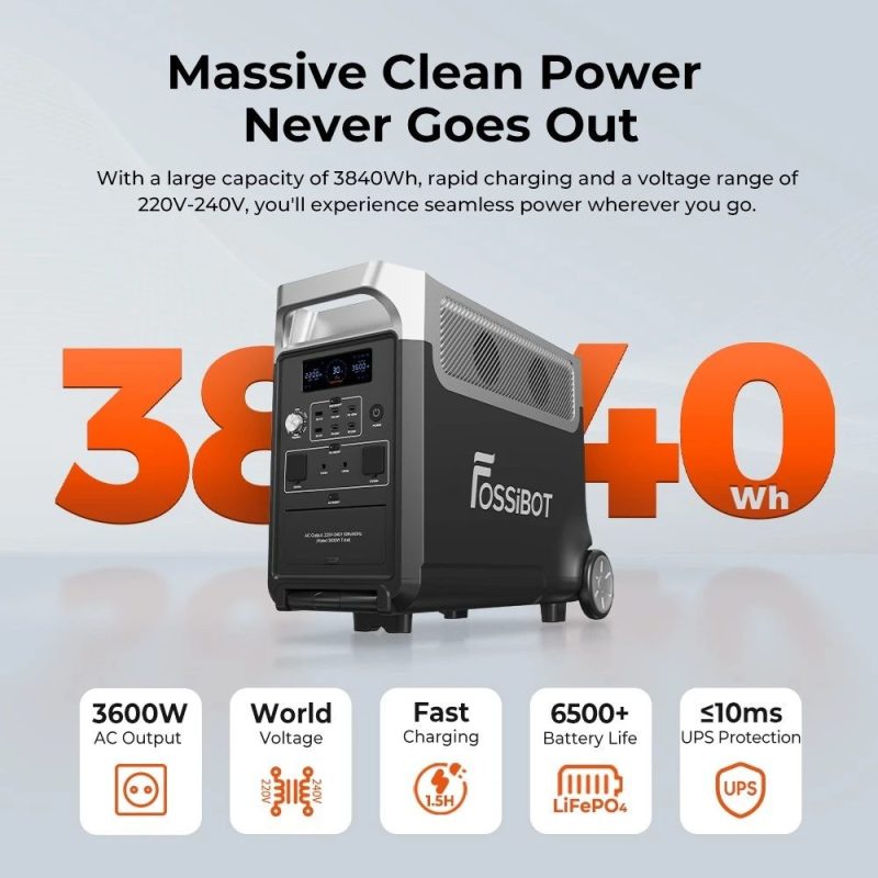 Centrale elettrica portatile FOSSiBOT F3600 + Pannello solare FOSSiBOT SP420 da 420 W, generatore solare LiFePO4 da 3840 Wh