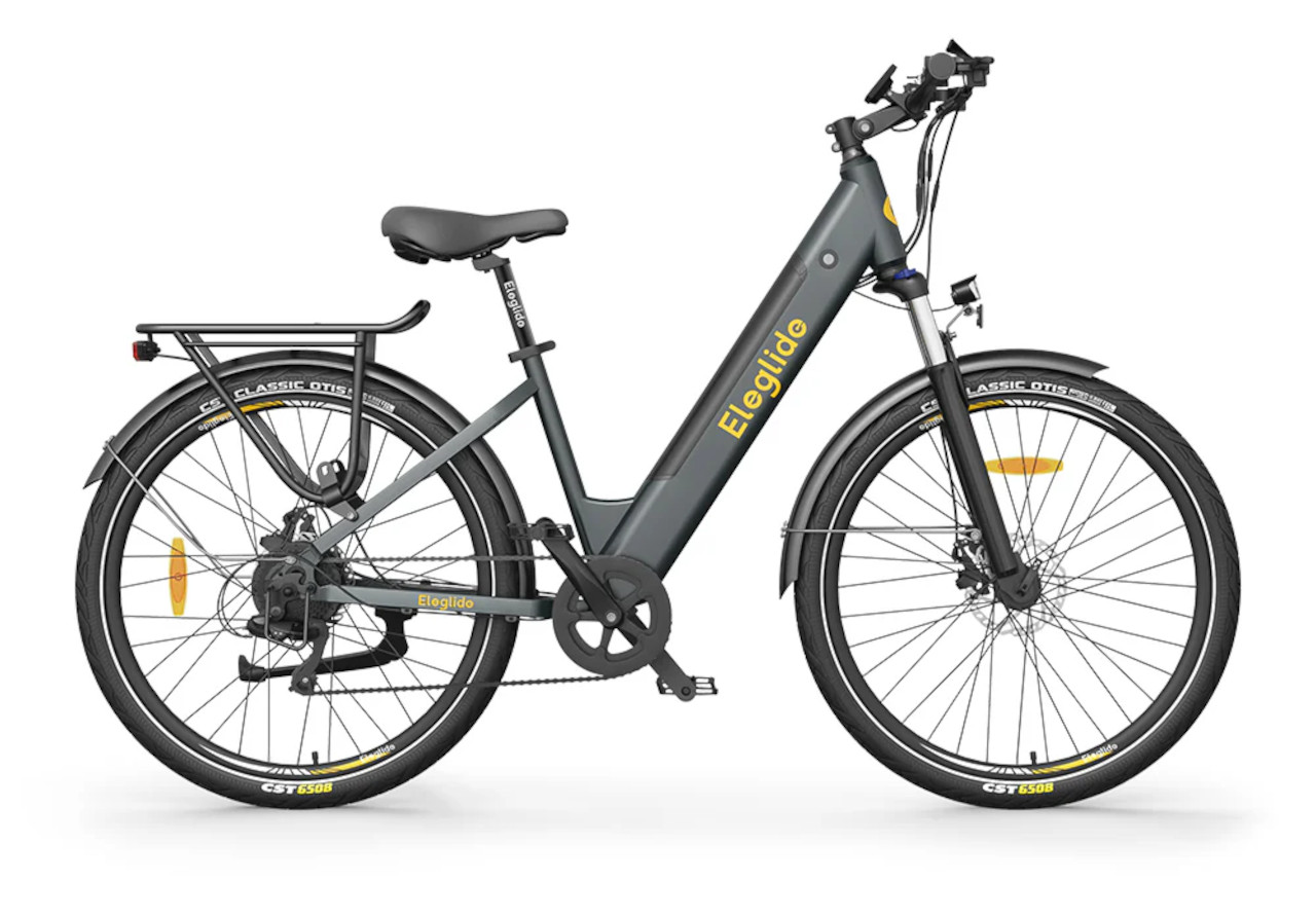 La e-bike di Eleglide prevede un telaio basso e pneumatici leggeri, adatti per la guida su strade urbane.