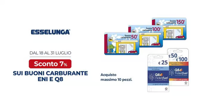 Fino al 31 luglio 2024 da Esselunga potrai acquistare le carte carburante ENI o Q8 con uno sconto immediato.