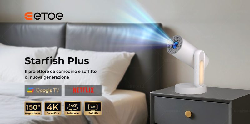 ETOE Starfish Plus: proiettore smart con design minimalista, Google TV, Netflix e proiezioni fino a 150". Scopri l'offerta di lancio su Geekmall