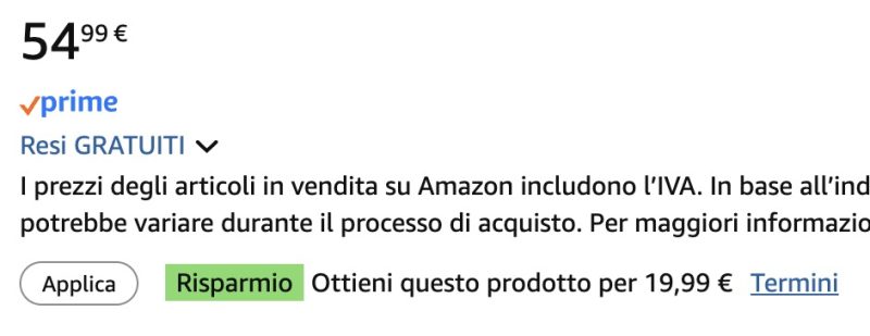 In caso affermativo, vedrai un box da spuntare che ti permetterà di abbassare il prezzo del dispositivo a 19,99€ al posto dei classici 54,99€.