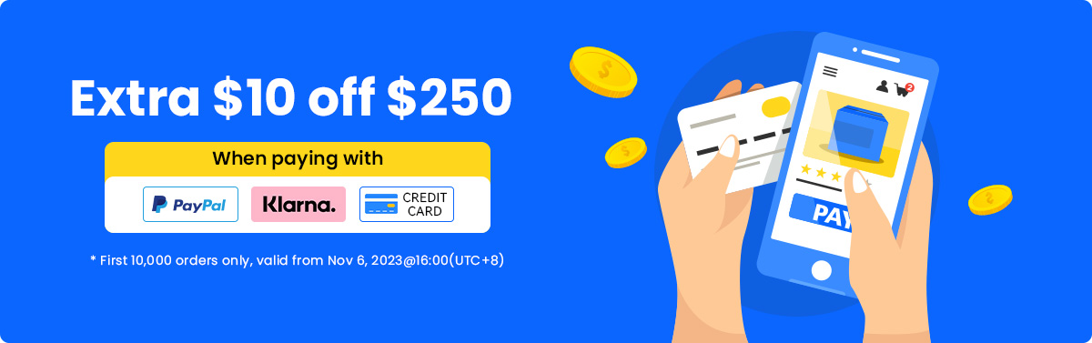 Non perdere l’EXTRA SCONTO al checkout pagando con PayPal: a fronte di una spesa minima di 250$ è possibile ricevere uno sconto di 10$ (valido solo per i primi 10.000 ordini).