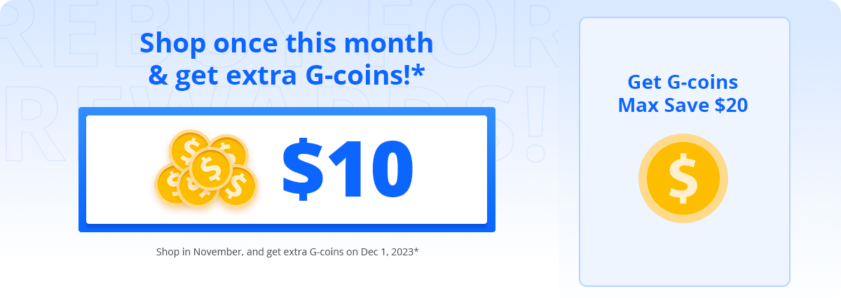 Come bonus, poi, per tutti gli acquisti fatti a Novembre otterrai 10 G-coins a Dicembre, che ti aiuteranno a risparmiare altri 20$ sui futuri ordini.