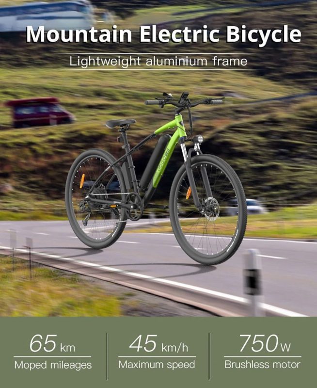 DUOTTS C29 Electric Bike 750W 29*2.1 inch Wheel 48V 15Ah Battery 50km Range 50km/h Max Speed Shimano 21 Speed Gear Electric Mountain Bike with Rear Rack IP54 Waterproof Smart APP - Black