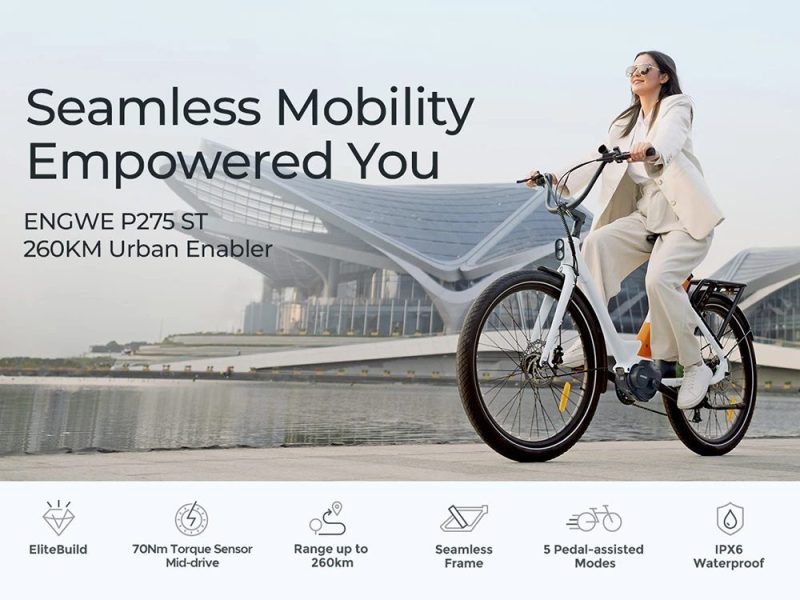 Bici elettrica urbana ENGWE P275 ST, motore con sensore di coppia mid-drive brushless da 250 W, batteria da 36 V 19,2 Ah, autonomia massima di 260 km, freno a disco idraulico, pneumatici a raggi da 27,5'', SHIMANO 9 velocità , nero