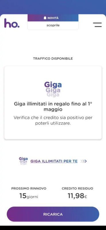 Semplice: apri l'app di Ho Mobile sullo smartphone e controlla nella pagina principale, ci dovrebbe essere un messaggio come quello che trovi di seguito: