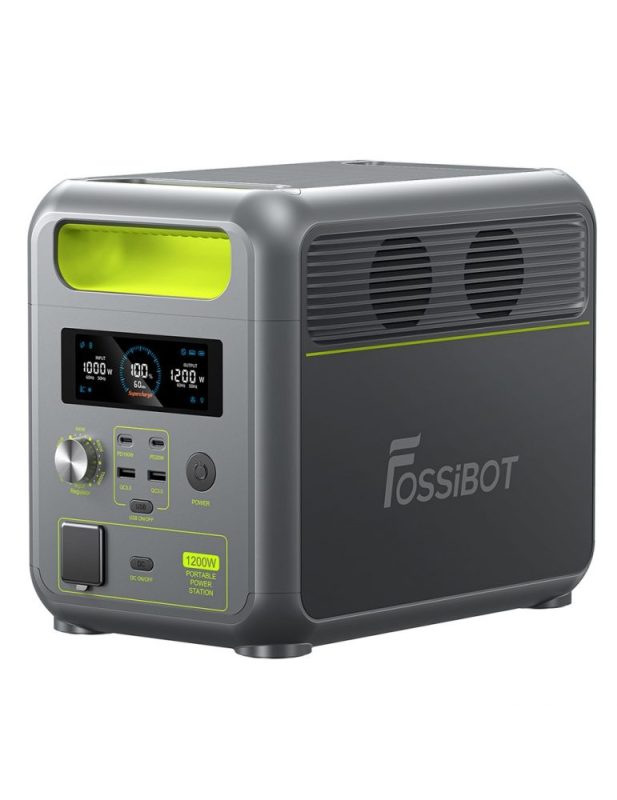 Tra le power station, quella più economica è FOSSiBOT F1200, ideale sia da portare in viaggio e in campeggio, sia da tenere in casa contro interruzione di corrente o come multi-presa. Ha una batteria da 1.024 Wh ed una potenza di 1.200W, è leggera e facile da trasportare (pesa solo 11,5 kg) ed è in grado di alimentare fino a 7 dispositivi contemporaneamente.