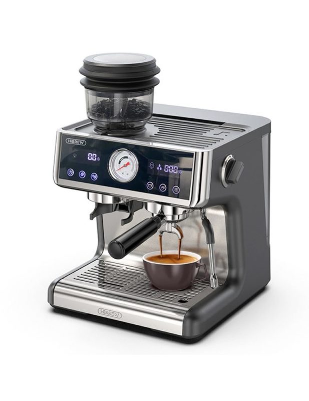 HiBREW H7A Macchina per caffè espresso, 20 bar di pressione, sistema a doppia caldaia, macinino a 30 livelli