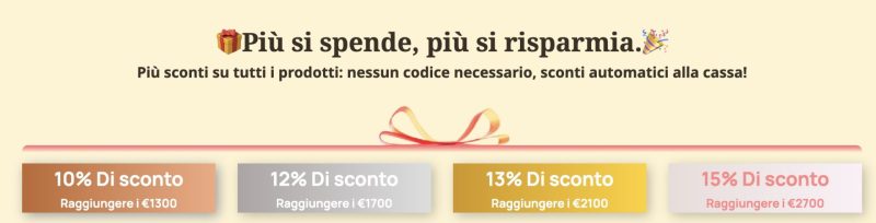Superando determinate soglie di spesa, infatti, lo sconto finale viene aumentato automaticamente nel carrello.