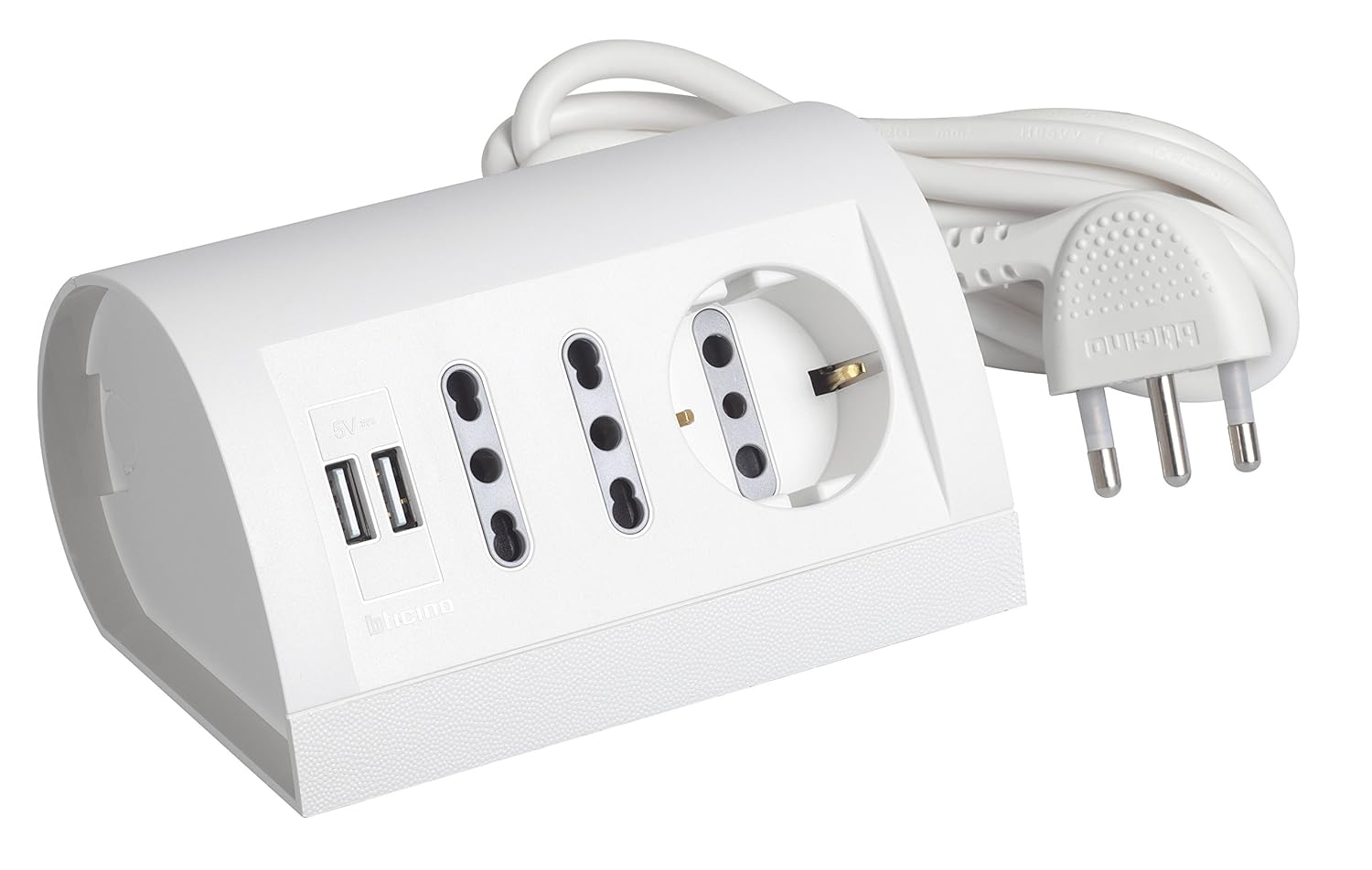 BTicino S3711DU Multipresa da Scrivania con 2 Prese USB, 2.1 A Ripartiti, Bianco/Grigio