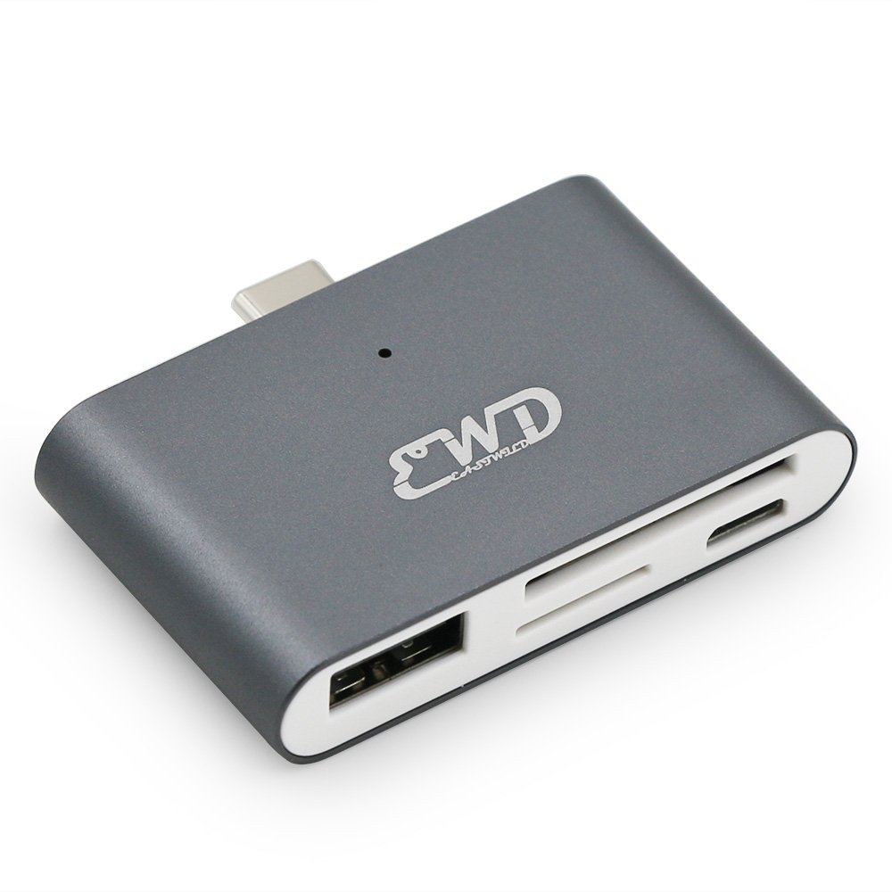 Adattatore USB C con lettore SD, porta USB e ingresso microUSB