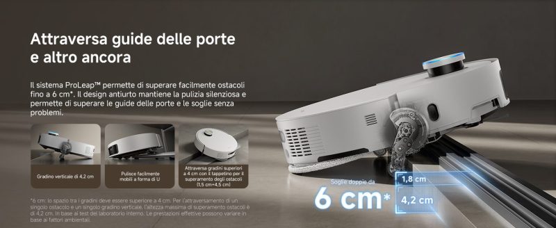 Il Dreame X50 Ultra Complete combina una tecnologia avanzata per una pulizia accurata e senza sforzo. Il suo sistema ProLeap™ garantisce una copertura ottimale ed efficienza di pulizia, mentre MopExtend™ RoboSwing raggiunge gli angoli più profondi e gli spazi stretti, senza lasciare tracce di polvere o detriti.