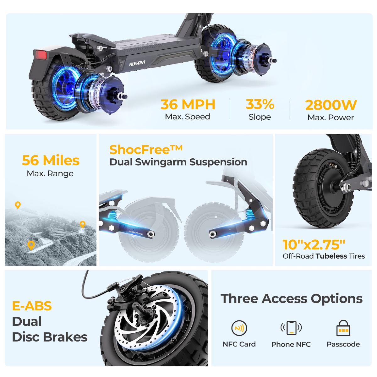 Nuova Serie Monopattini Elettrici Ausom: Fino a 90 km di Autonomia, 2800W e €50 di Sconto