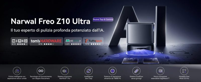 - Narwal Freo Z10 Ultra a €649 (invece di €1.299)