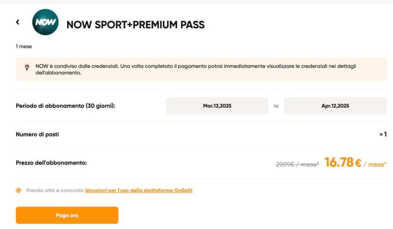 Come acquistare un abbonamento condiviso NOW SPORT+PREMIUM al miglior prezzo