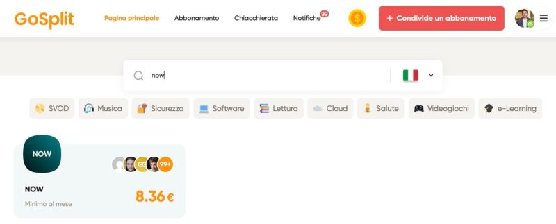 Come puoi notare, su GoSplit puoi acquistare account e abbonamenti condivisi per tantissimi servizi.
