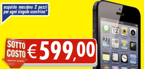 Ecco a voi l'offerta di Bennet, che propone il nuovo iPhone 5 a soli 600€ contro i 730€ richiesti normalmente.