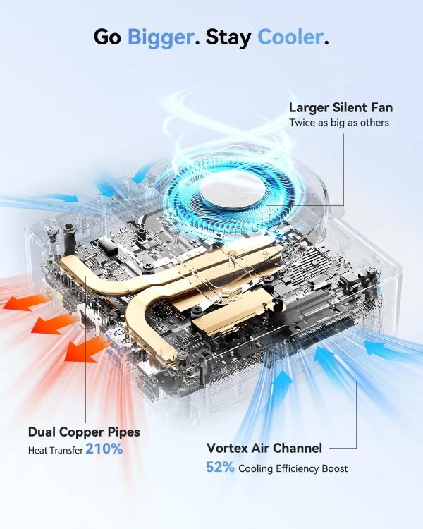 Tutto questo garantisce tempi di risposta più rapidi e una migliore capacità di gestire il multitasking e applicazioni pesanti. In altre parole, il Mini Air12 è ancora più scattante nelle attività quotidiane: dalla navigazione web alla suite Office, dalla visione di video in streaming 4K fino a piccoli progetti di foto ritocco o coding, tutto risulta fluido e reattivo.