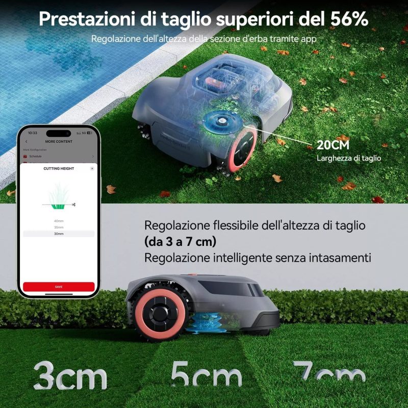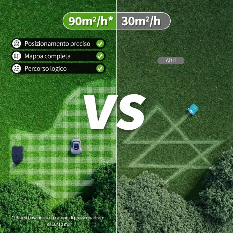 - Mappatura intelligente del giardino grazie a sensori precisi e percorsi ottimizzati