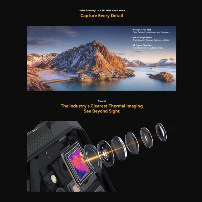 Accanto alla termocamera troviamo una fotocamera principale Samsung ISOCELL HM6 da 108MP, che offre immagini più nitide e dettagliate, ideale sia per documentazione tecnica sia per uso quotidiano.