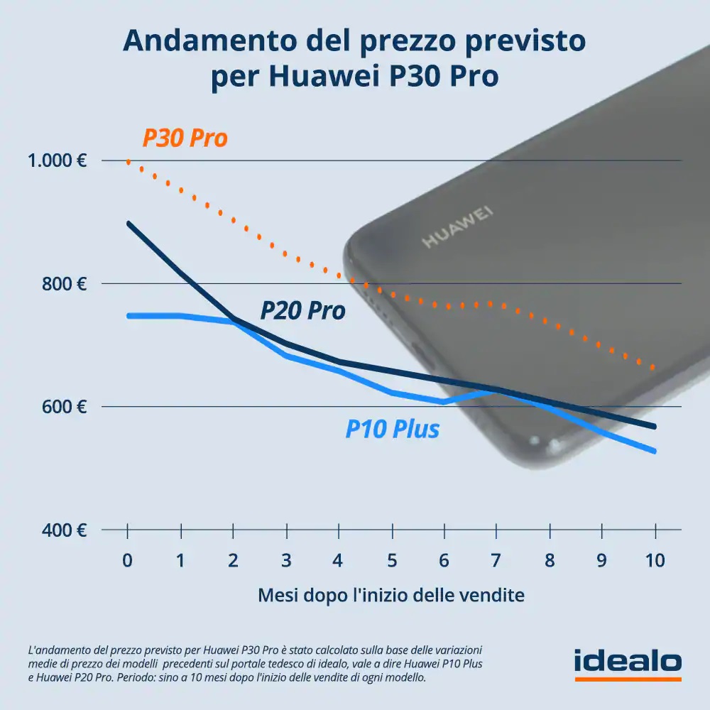 Per il P30 Pro il primo crollo del prezzo avviene al 2° mese.