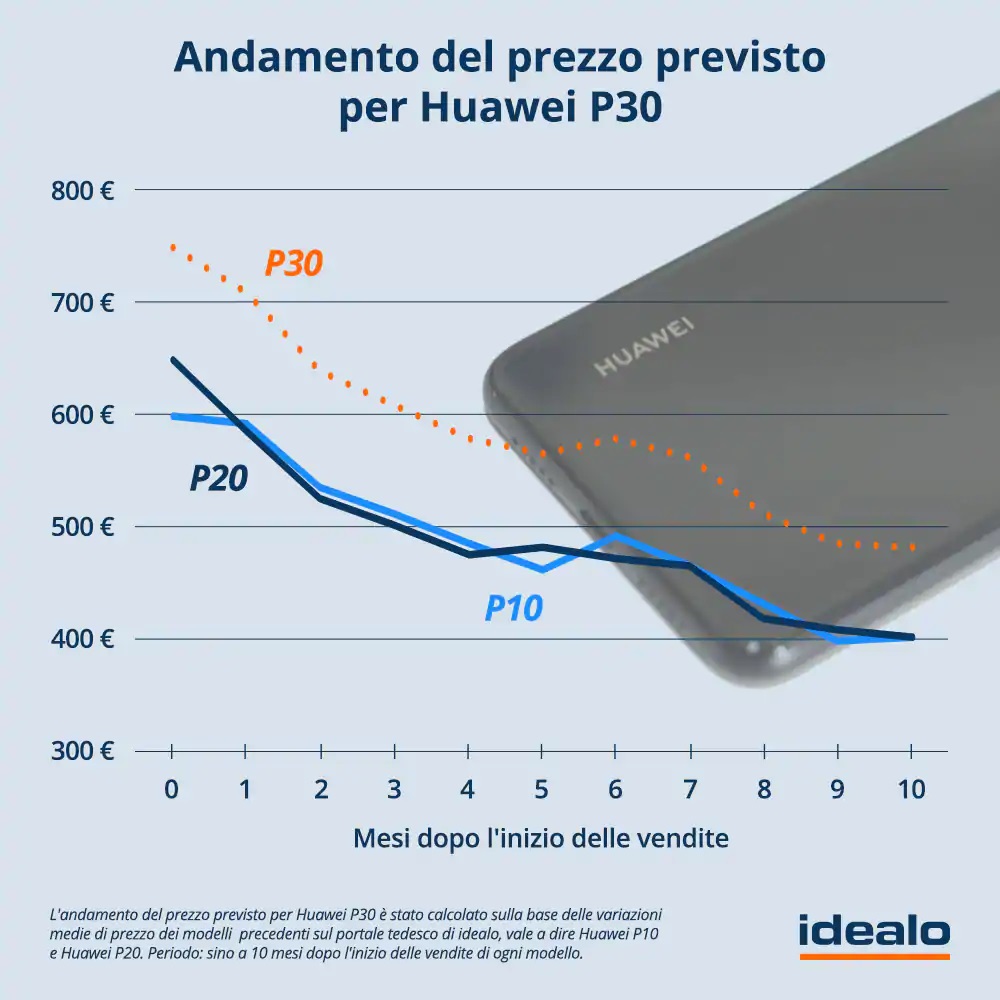 Quando diminuirà il prezzo del Huawei P30? Ecco il grafico