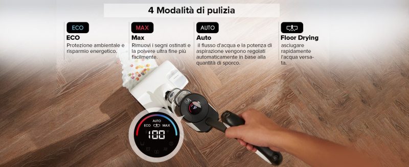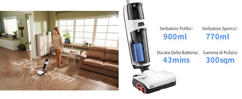 - Portata Massima di Pulizia fino a 300mq (Singola Carica)