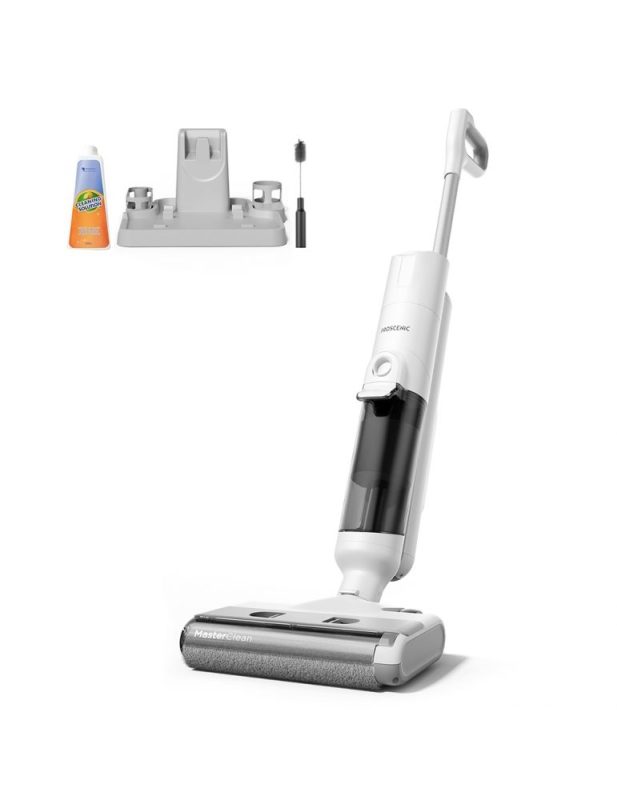 Il Proscenic F10 Pro è un aspirapolvere lavapavimenti senza fili 3 in 1 che combina aspirazione, lavaggio e pulizia a umido con acqua dolce per rimuovere macchie ostinate dai pavimenti duri. Offre tre modalità di pulizia (Smart, Max e Aspirazione) e un sistema di autopulizia automatico.