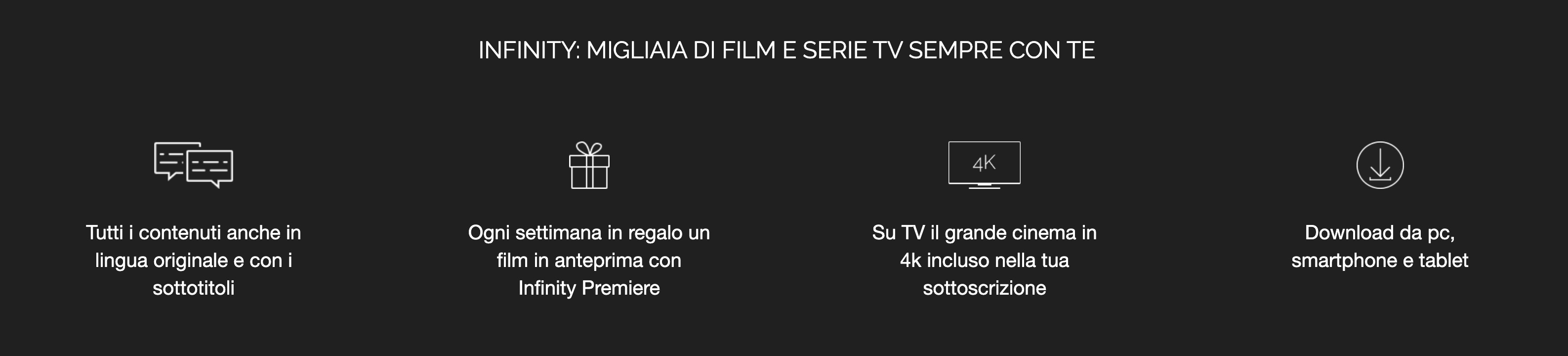 Infinity supporta anche lo streaming 4K per godere della migliore qualità visiva.