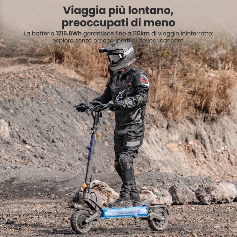 Ideale per spostamenti urbani, off-road e lunghi viaggi, combina velocità, autonomia e comfort in un design pieghevole e tecnologico.