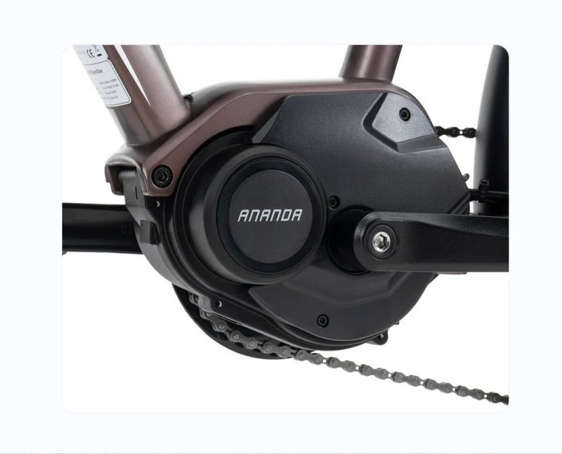 Questa e-bike è dotata di un motore centrale da 250 W che eroga una coppia di 70 Nm, garantendo un'assistenza potente e fluida alla pedalata.
