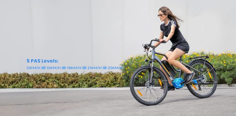 Il sistema di pedalata assistita offre 5 livelli di supporto, permettendo di personalizzare l'esperienza di guida in base alle proprie esigenze e al percorso.