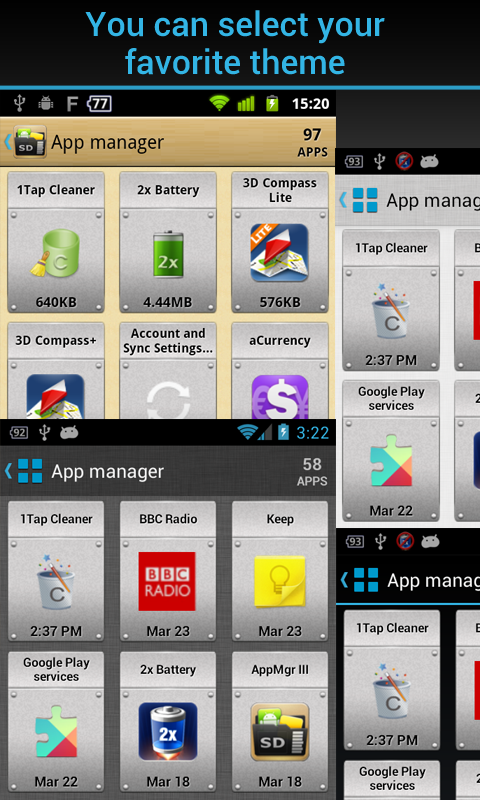 AppMgr, conosciuta precedentemente come App 2 SD, è stata totalmente riprogettata con un nuovo design e nuove caratteristiche come la caratteristica di Spostare le App per aiutarti a spostare le applicazioni da una memoria all'altra del tuo dispositivo, nascondere le App permettendoti di nascondere le applicazioni dal menu del telefono ed anche App Manager per gestire la disinstallazione, lo spostamento e la condivisione con gli amici delle applicazioni. Dunque una sola applicazione per gestire a 360 gradi tutte le applicazioni come lo spostamento delle app per recuperare spazio prezioso sulla memoria interna del dispositivo Android.
