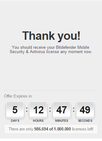 Per ottenere una licenza gratuita di Bitdefender Mobile Security & Antivirus, andare in questa pagina e inserire la vostra e-mail entro il 19 Novembre 2013.