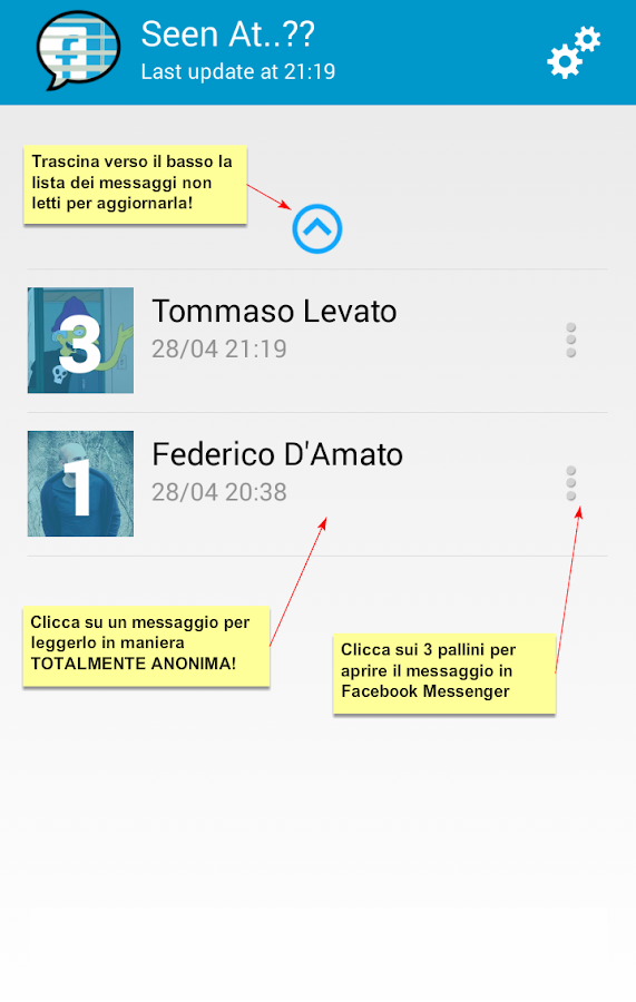 "Seen At..??" è un'applicazione che ti permette di visualizzare i tuoi messaggi di Facebook senza farlo sapere ai mittenti, ovvero senza che appaia sulla loro schermata di chat la famigerata scritta 'Visualizzato alle'.